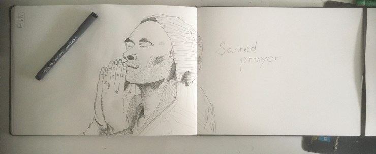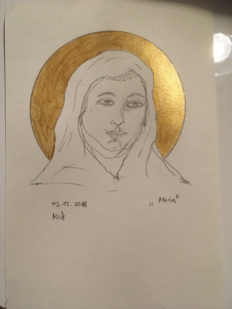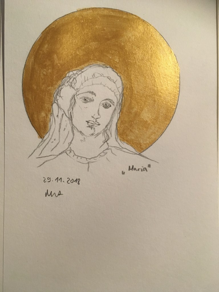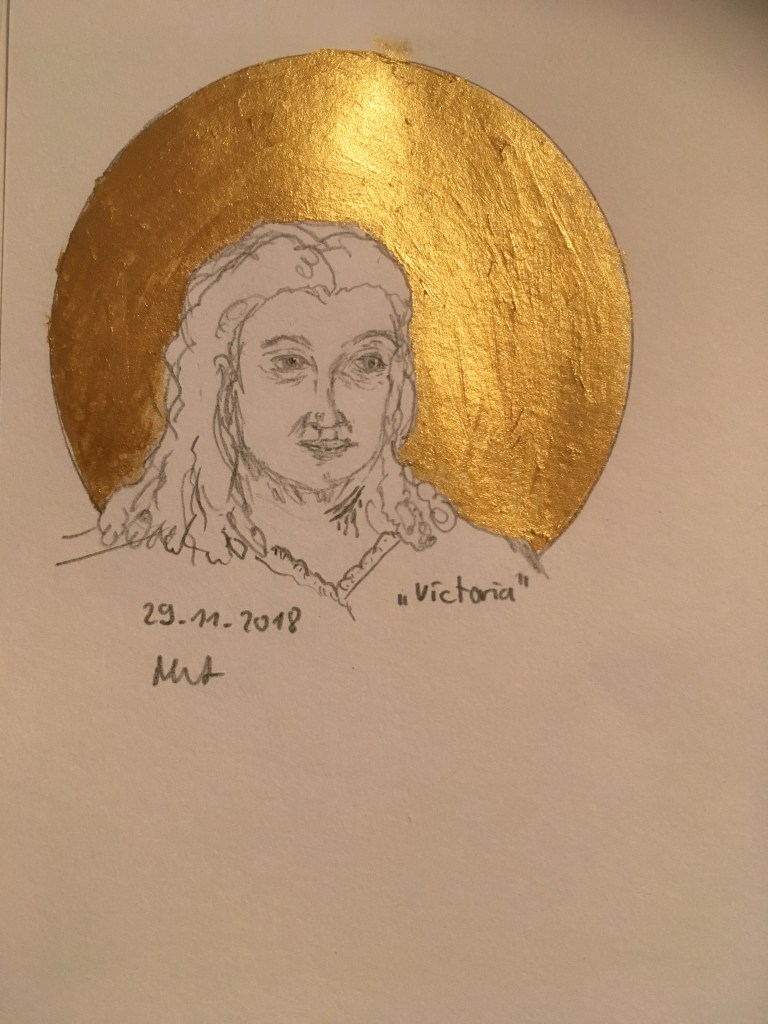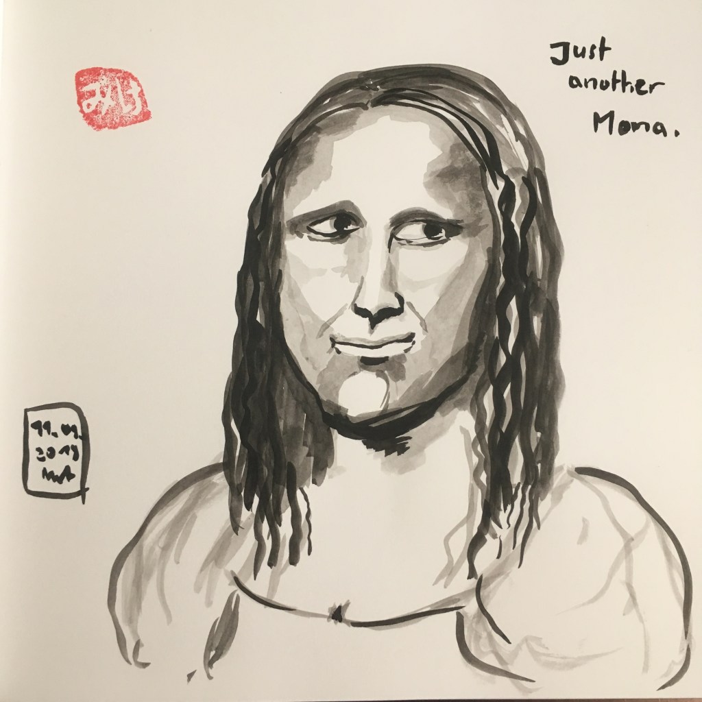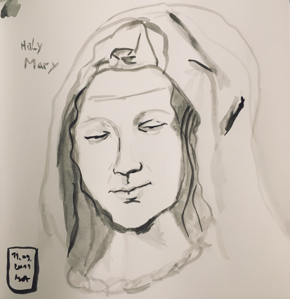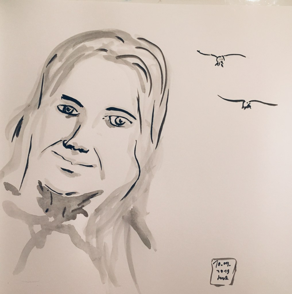 Mal drei weibliche Portraits in Tusche.